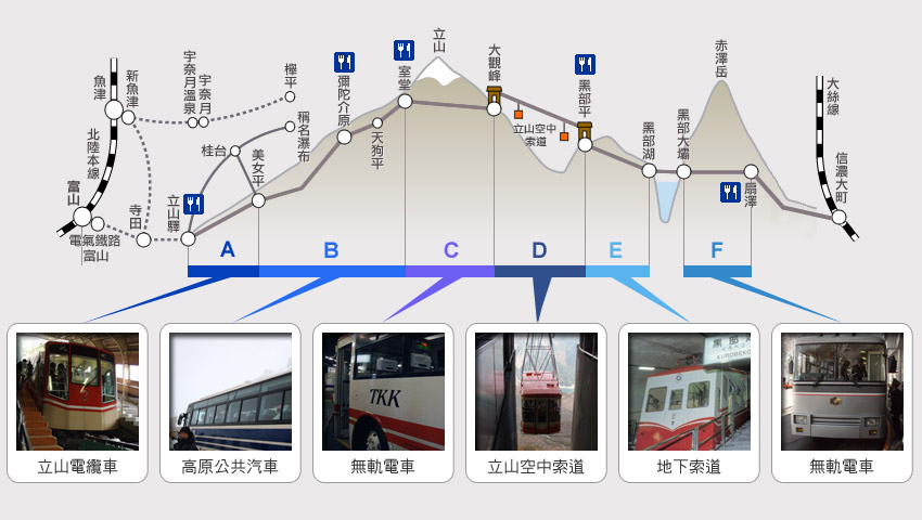 註2:由於黑部立山位於海拔2500多公尺的高山,山上溫度大都接近0度,敬請上山旅客要穿著禦寒衣物保暖,謝謝。